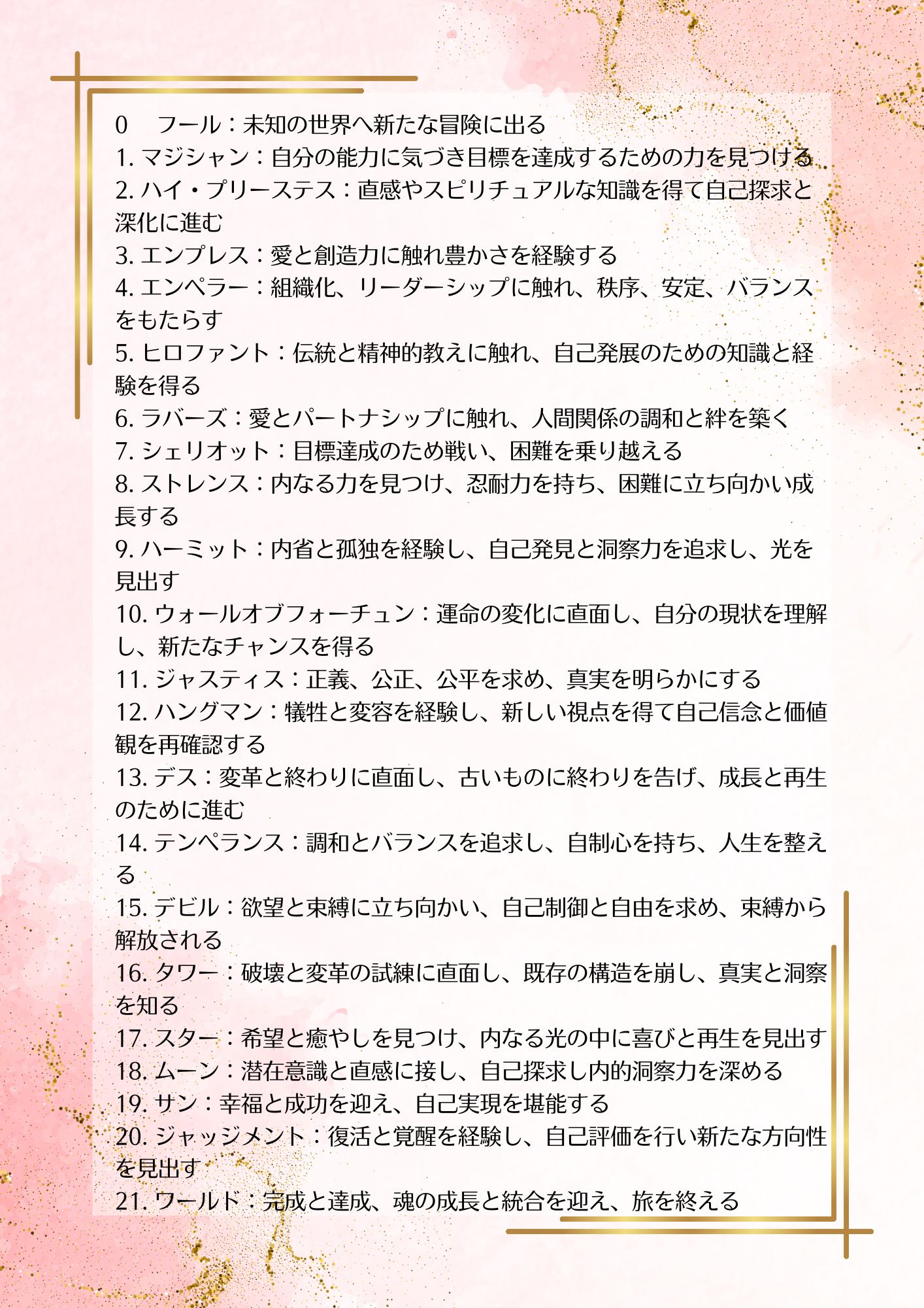 タロットカードがない方は、こちらをプリントして下さい。